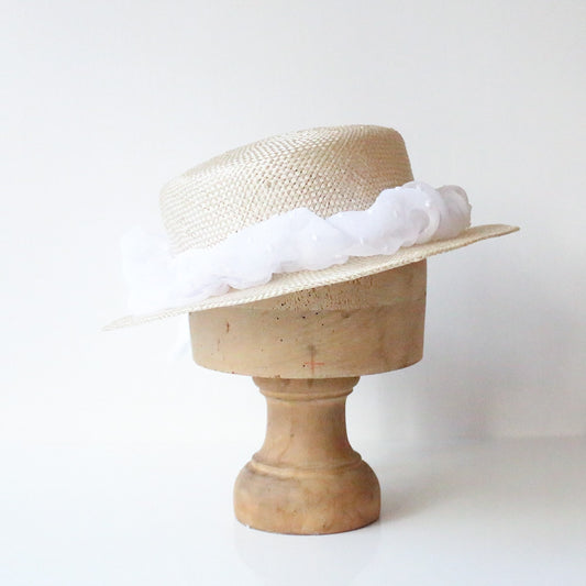 Bandeau Chapeau Cheveux Blanc plumetis Chouchou