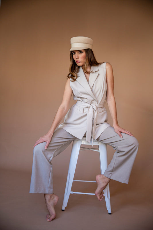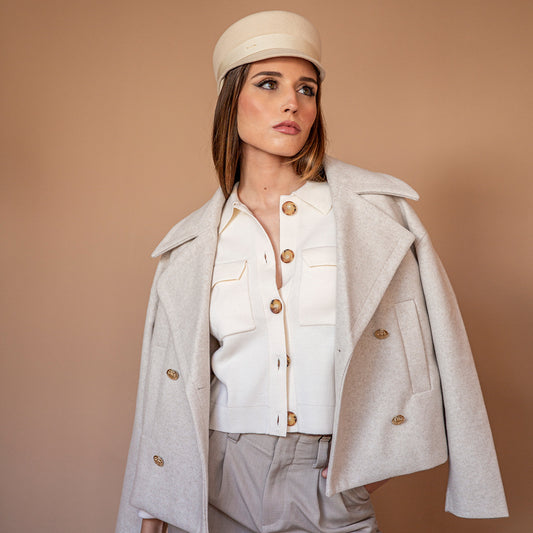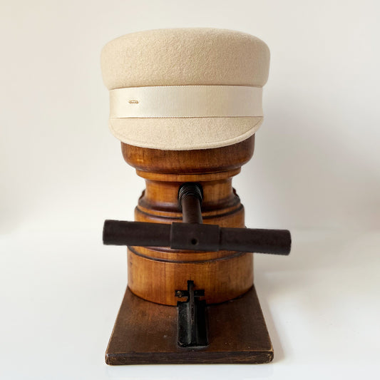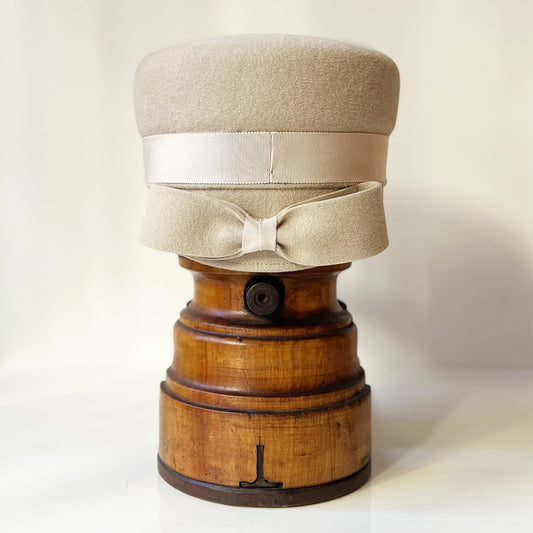 Casquette Martine Beige crème longue Noeud feutre mérinos