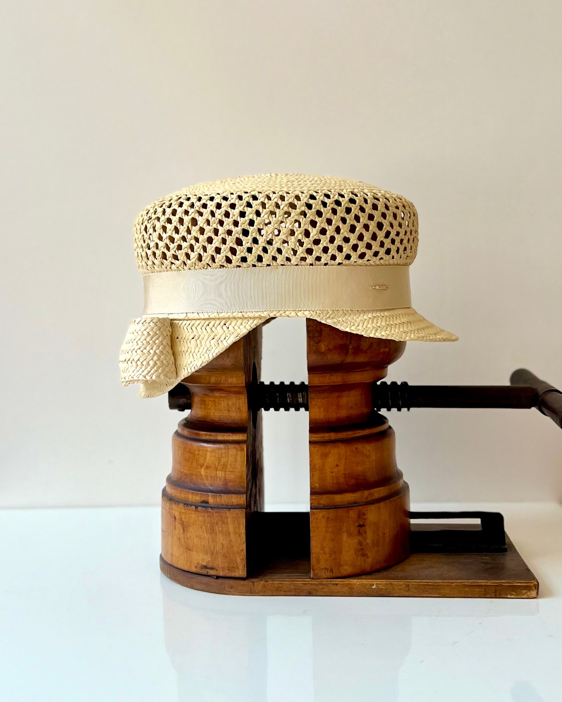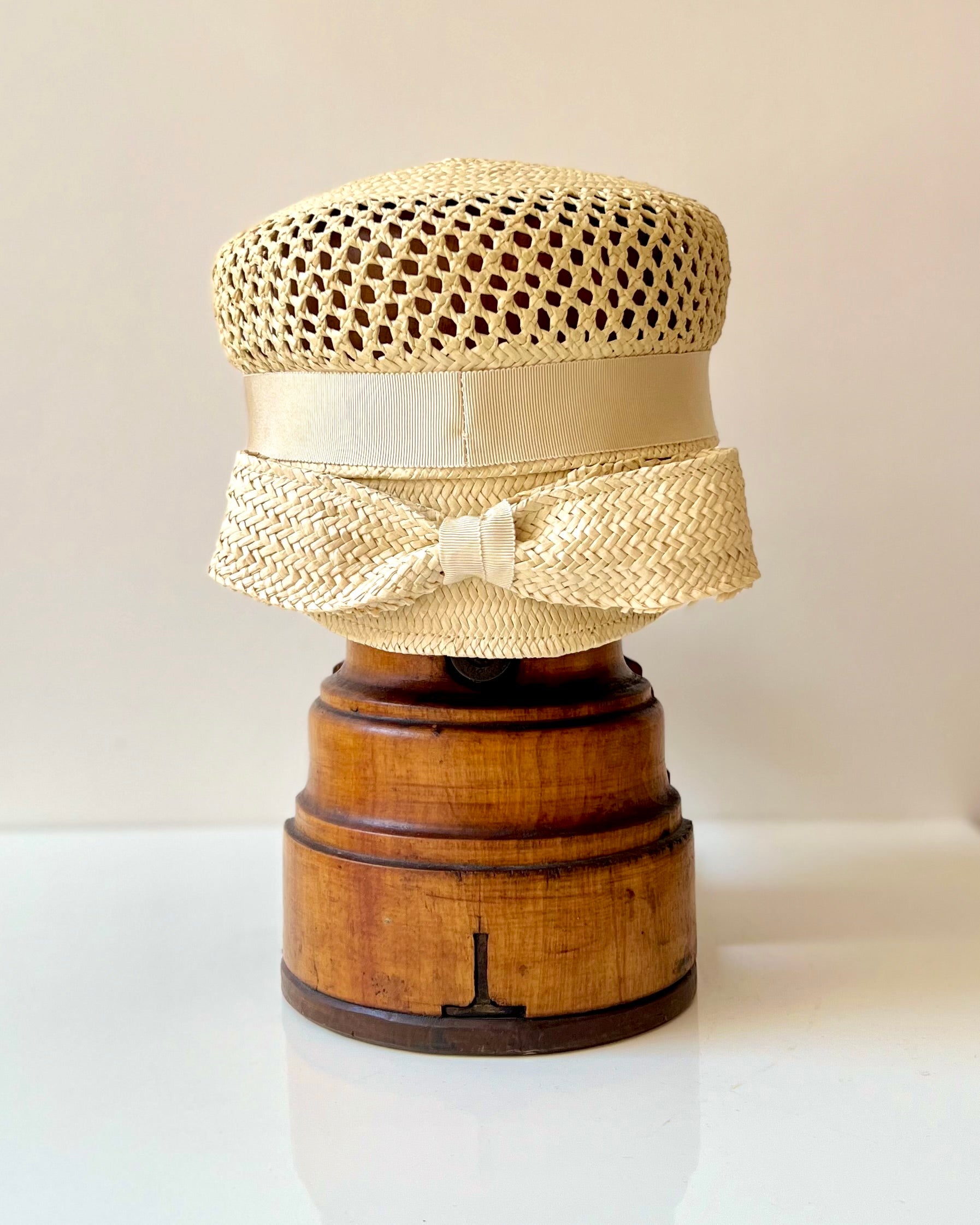 Casquette Martine longue noeud paille ajourée