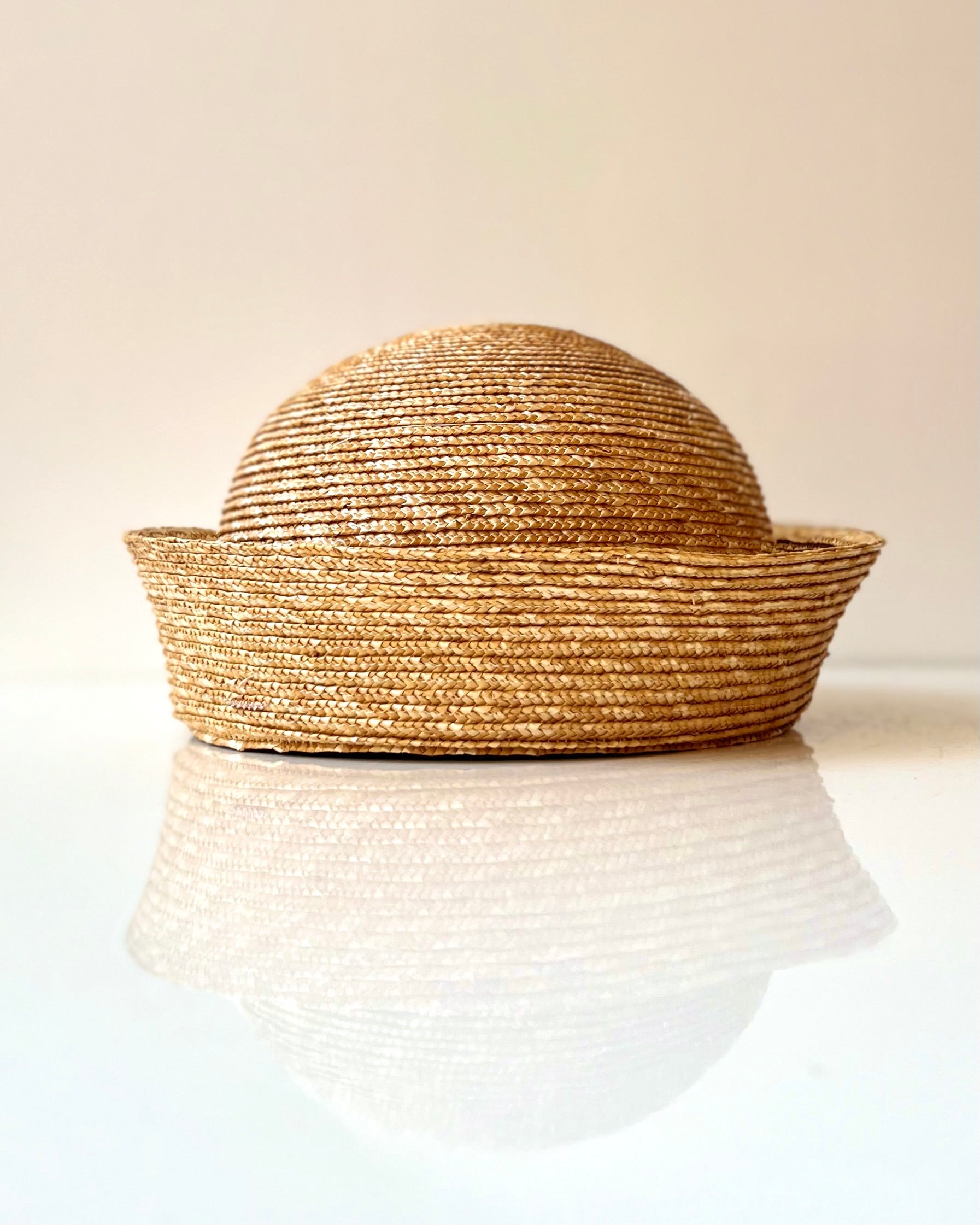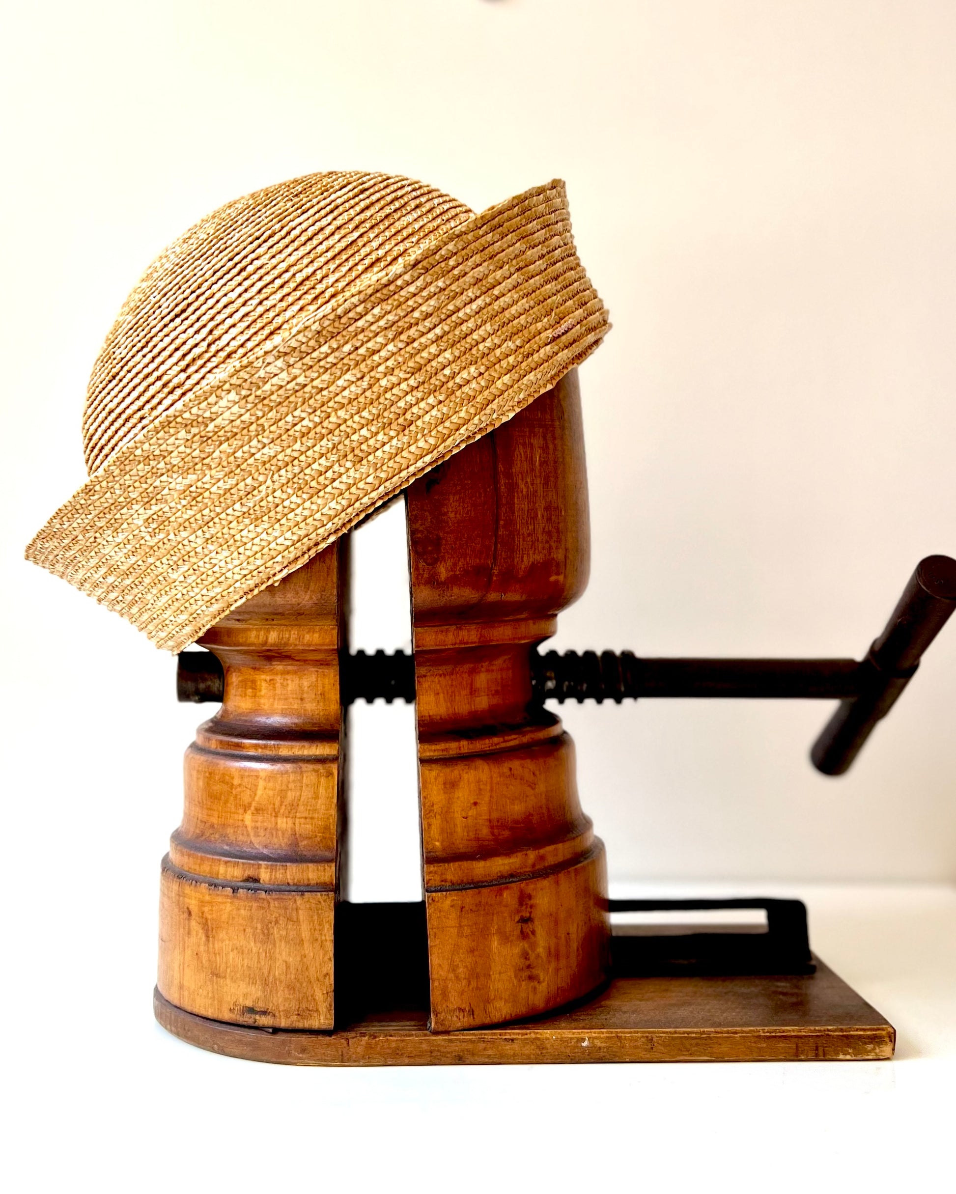 Chapeau Marin en paille cousue, se porte aussi bien bord relevé que bord baissé pour protéger du soleil.