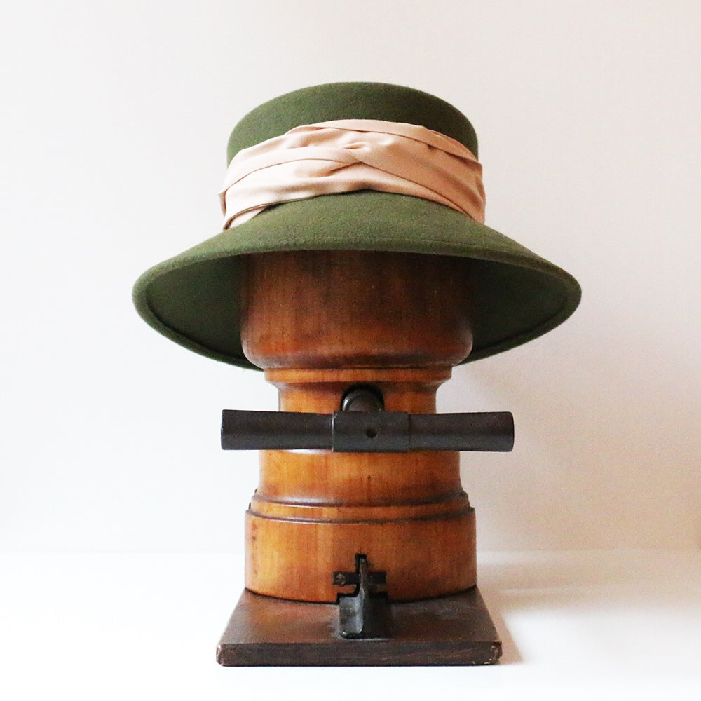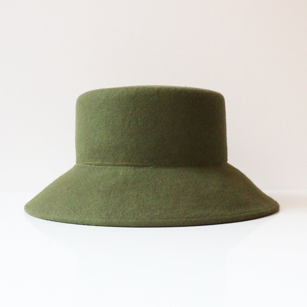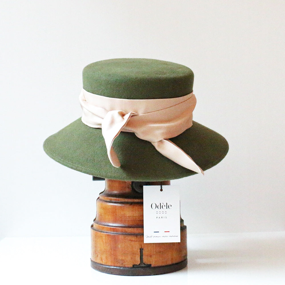 Chapeau Odette en feutre mérinos Olive Kaki à bord cloche ,