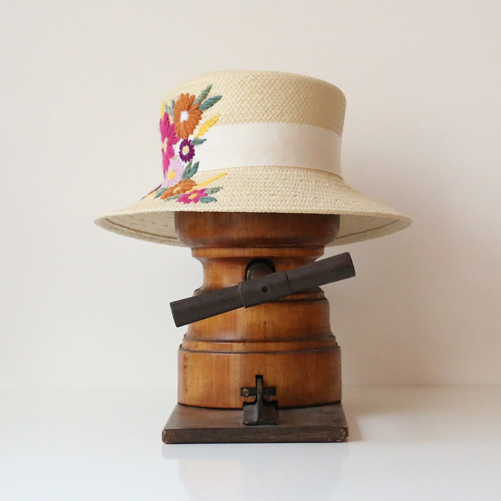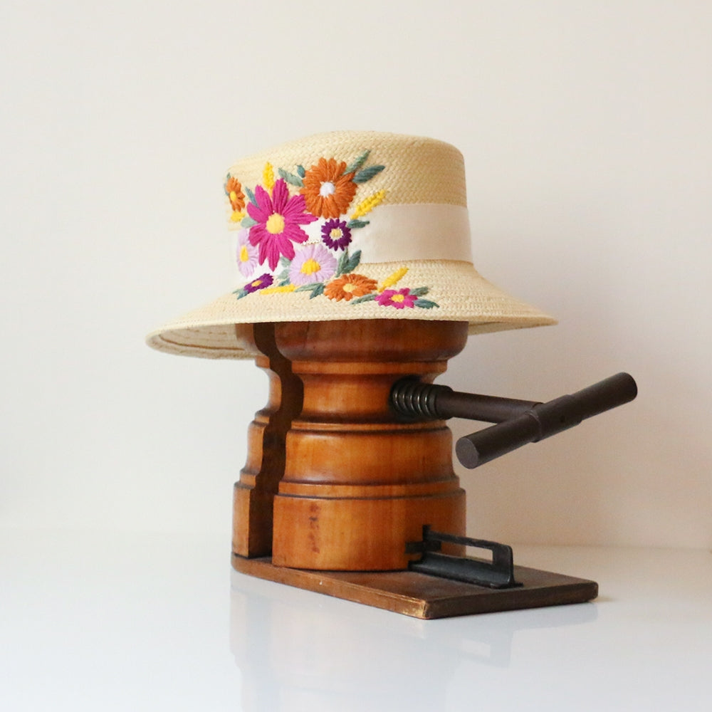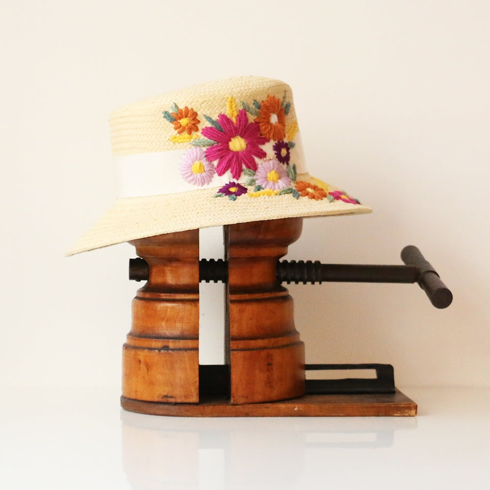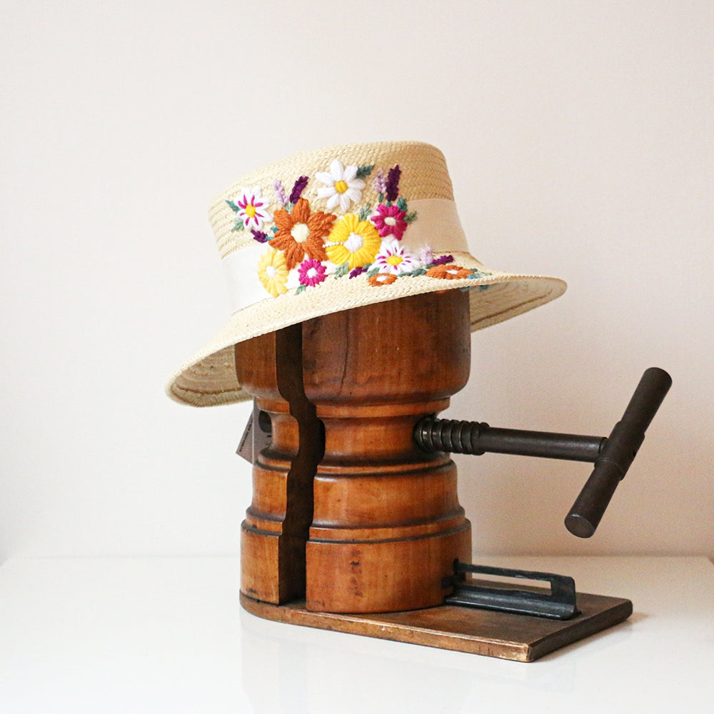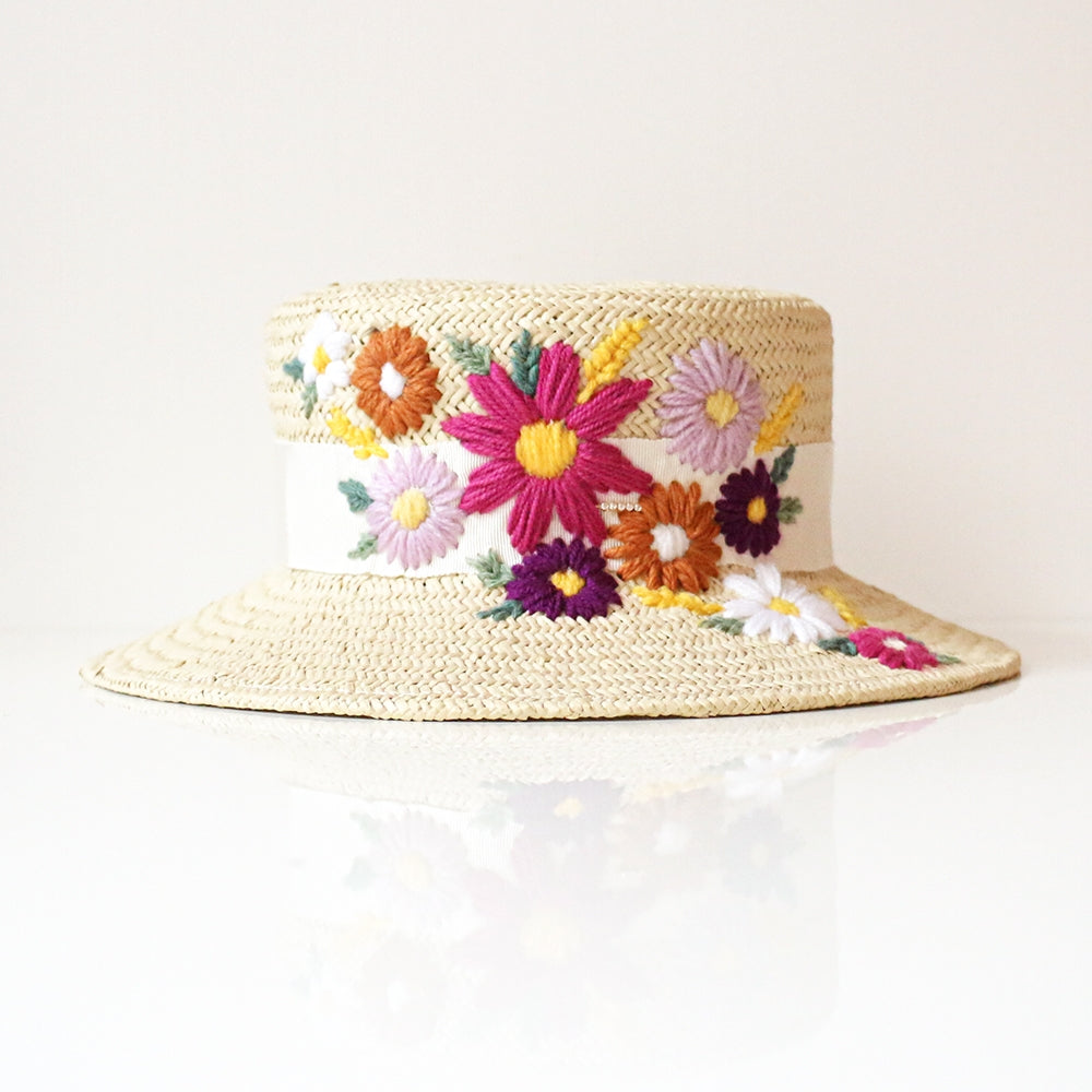 Chapeau à bord cloche idéal pour la saison d'été, Chaque chapeau est unique, la broderie peut différer de la photo.