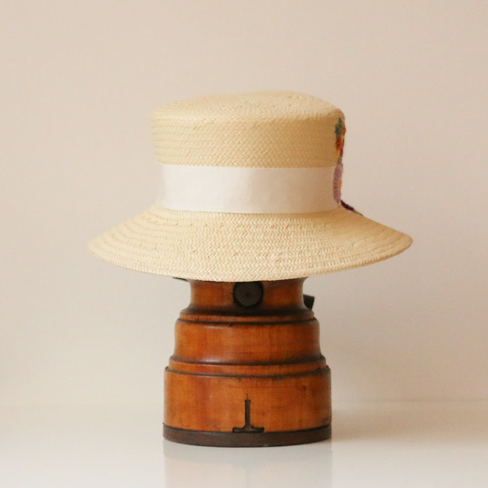 Chapeau bob Michelle en paille à bord cloche dans l'esprit du bob , entièrement brodé à la main par la créatrice Fullart.