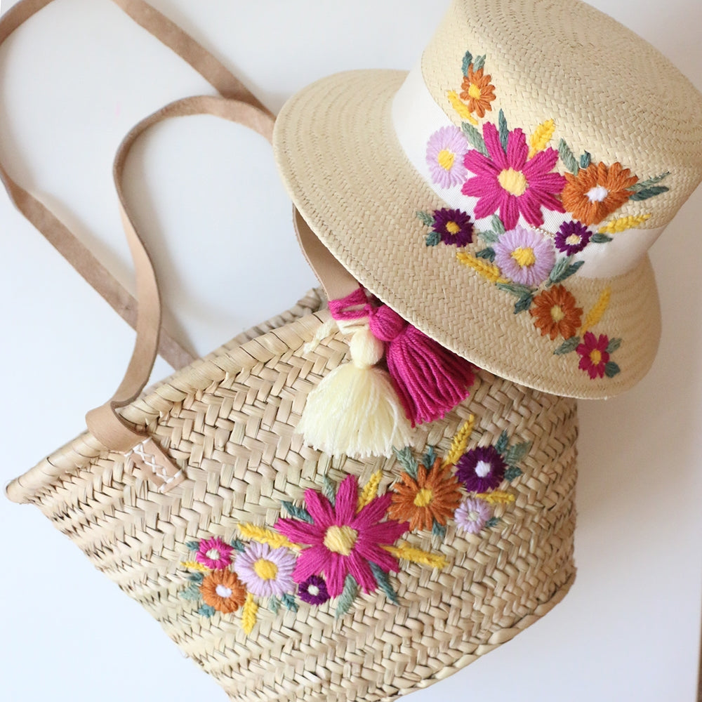 Odèle Paris X Full Art - Chapeau bob Michelle en paille brodé fleurs